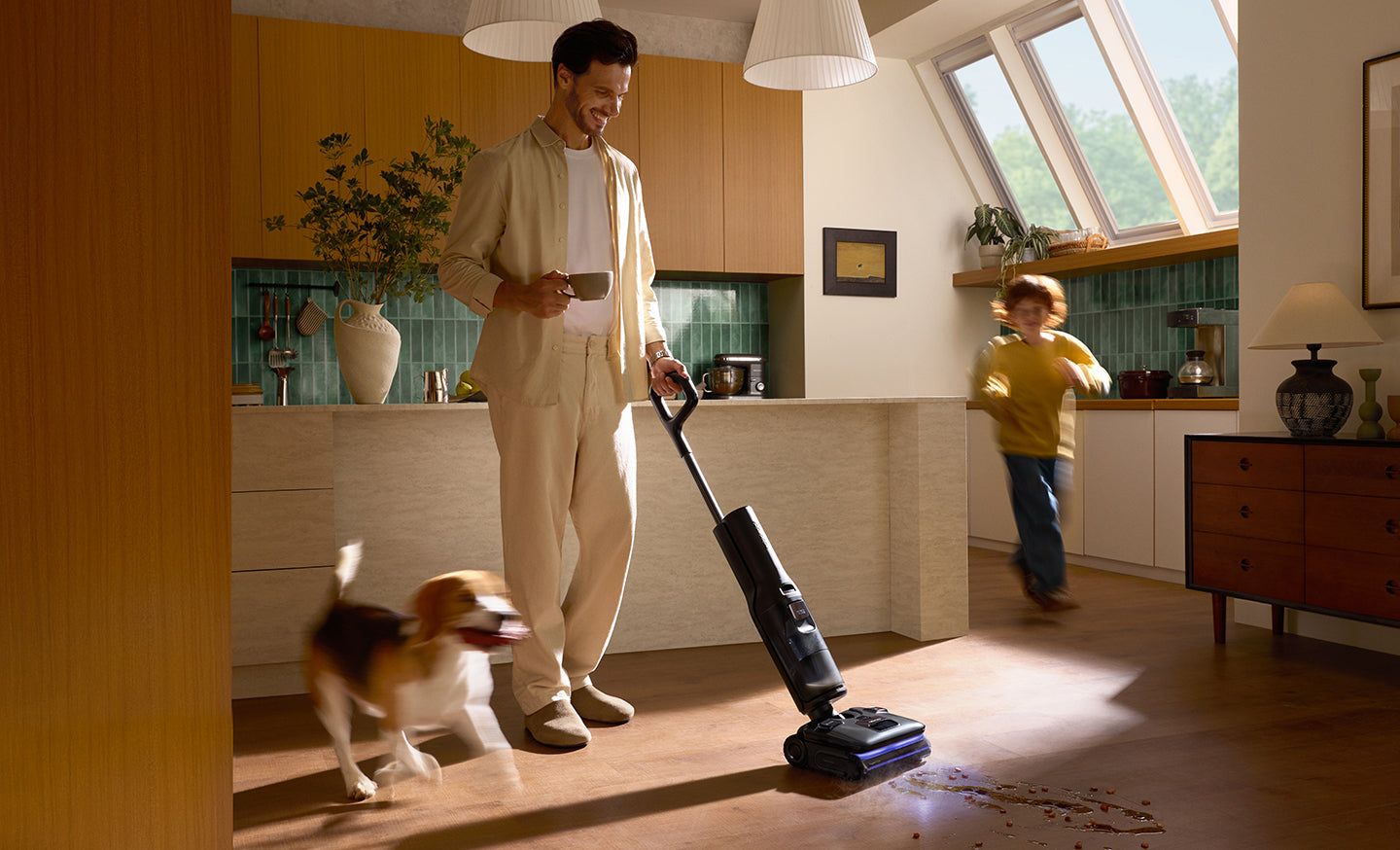 Enhanced suction power removes daily wet and dry messes in a single stroke.